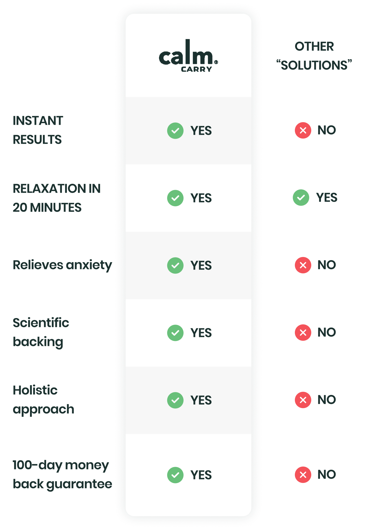 Unlike other expensive, bulky, non practical options on the market, CalmCarry was designed to fill the gap for those seeking a natural solution for anxiety and insomnia support that's both practical and highly effective.