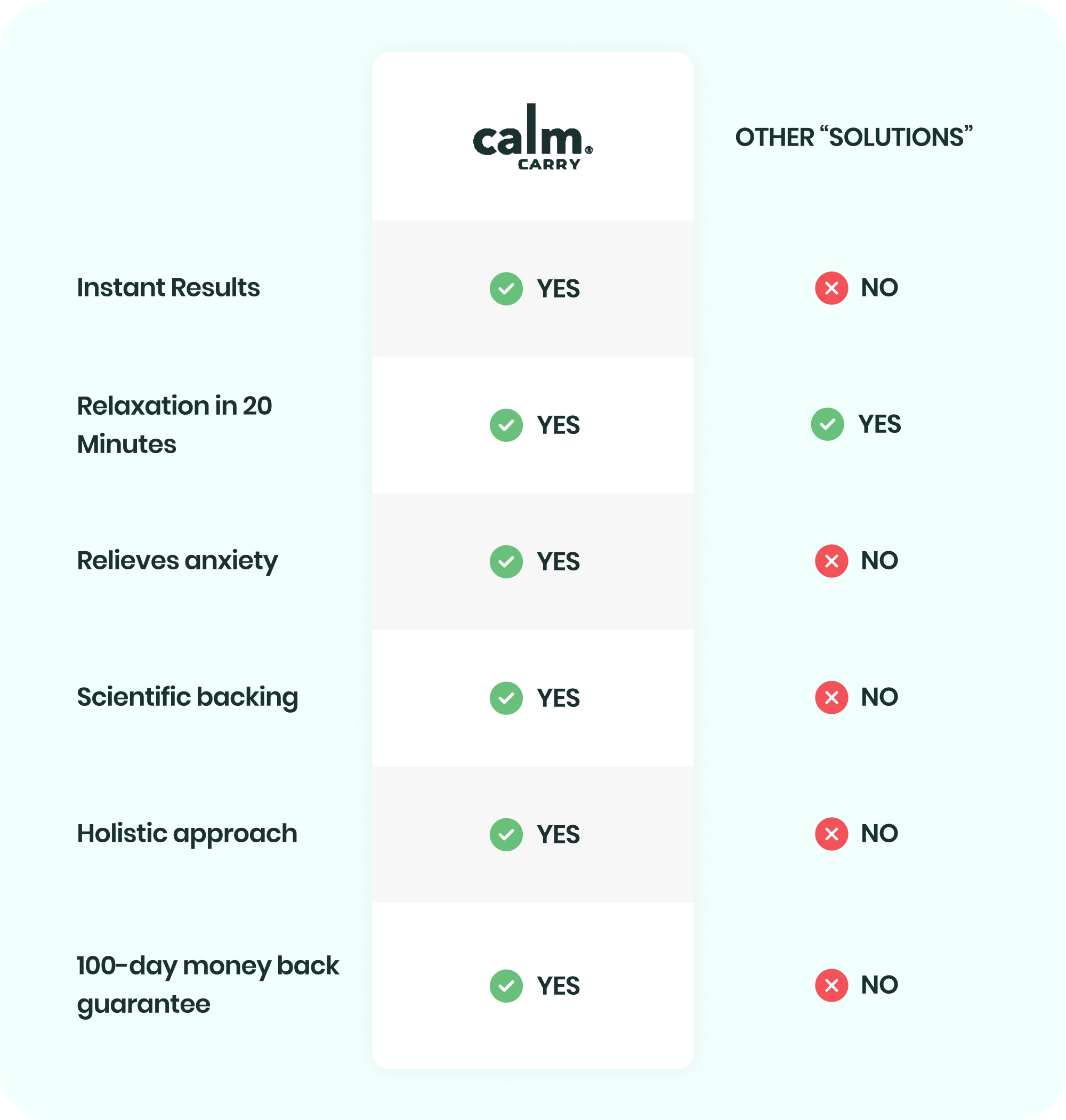 With CalmCarry, you can experience relief from stress and sleepless nights without the potential risks & dependency.